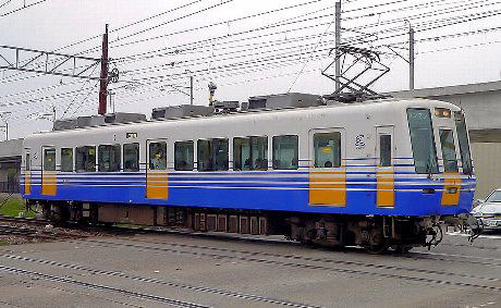 えちぜん鉄道 5001形−ピグモンの風船−娘たちが「モンスターストライク」というゲームにはまっています。何でもウルトラマン50周年記念コラボというのをやっていて、ピグモンという怪獣を一所懸命に集めているのです。 スマホの画面にずらり並んだピグモンにはお約束の風船が描かれてありました。 実は私はこのピグモンに対して思い入れがあります。 そこで私は娘たちに風船の話をしてやったのですが、その後、懐かしさのあまり、ユーチューブで検索してみました。 ほんとにネットは便利ですね。いろんな事がわかりました。 『ウルトラマン』第8話「怪獣無法地帯」 科学特捜隊が、多々良島で行方不明になった調査団を探しに行った時。 目の前に現れた怪獣ピグモン(身長1mほど)に隊員たちは驚きます。 しかしピグモンは、彼らをどこかへ誘導しようとするのです。 ピグモンを追ってジャングルをさまよう隊員たちは、再び走り出そうとするピグモンに目印を付けようとして特殊風船爆弾を放ちます。 この時点ではピグモンを得体の知れない怪獣として恐れていたのです。 風船爆弾などというものを 何で、この時 もっていたのか理解に苦しむところですが、 これがお話の結末に大きな意味を持つことになります。 それはさておき、見事ピグモンの背中に命中した風船爆弾を目印に隊員は追跡を再開、 岩のくぼみに人が横たわっているのを発見します 行方不明になっていた団員でした。 彼を抱き起こし自分達の任務を説明する隊員たちに、 団員はこの島が2年半のあいだに怪獣たちの島となり、島に着くなり怪獣たちに襲われ数名が死亡。 そして自分はというと、このピグモンが、以来、今日までジャングルの中から食べ物や水を運び命を救ってくれたことを告げます。 その時です。叫び声とともに怪獣レッドキングがこちらに向かって来ました。 隊員はレッドキングを食い止めるべく出撃して行きます。しかし、隊員よりも先に最前線にいたのがピグモンだったのです。 ピグモンは、レッドキングの気を逸らそうとして、目の前でおどけてみせます。 そのときの風船が私の記憶にしっかり残っているのです。 前述のようにピグモンが自らの意思で自分の姿を目だたたせようとして風船を付けているわけではなかったのですが、 「この場を何とかしなきゃあならない。」というピグモンの存在にレッドキングは気がつきます。 「なんだお前は。」と言わんばかりに凶悪怪獣レッドキングはその怪力で大岩を地面にたたきつけます。 あたり一面に飛び散った岩がピグモンを襲い、ひとたまりもなくピグモンは倒れてしまいます。 そのときです。目印につけていたの風船がピグモンの体から離れ、空へと、そしてレッドキングの目の前に舞い上がってゆくのです。 これはただの風船ではない。風船爆弾だ。ピグモンが命がけでくれたチャンスだ! と悟った隊員はスーパーガンを発射。風船は見事レッドキングの目の前で大爆発。 レッドキングは持っていた大岩を自分のつま先に落とし痛手を被ります。 そしてその姿を見届けたピグモンは、静かに目を閉じるのです。 京福電気鉄道福井鉄道部(旧福井支社)は1990年代に入り、ますます経営が厳しくなり、廃線を検討するようになっていました。 かねてから新車を投入することなどできず、南海や阪神などから中古車を譲り受け、 一部はそれに旧型電車の足回りを組み合わせるなどして工面していたのですが、 これでは冷房化もできず、乗客減を食い止めることはできませんでした。 そこで、京福電気鉄道は沿線自治体から補助を受け、新造車を投入することにしたのです。 これが5000形です。 武庫川車両で1999年に2両が製造され、2000年より運行につきました。 新車とはいいながら、これとて新製したのは車体のみで、 台車・電動機・クーラーなどは阪神・豊橋鉄道などから譲渡を受けた旧型車から流用しています。 それでも前面が「く」の字形となる近代的な車体は京福電気鉄道のイメージを大きく変えることにはなったでしょう。 5001号機は恐竜(フクイサウルス)のイラストをあしらった「ダイナソートレイン」となりました。 7月から9月にかけ、勝山市では「恐竜エキスポふくい2000」が開かれ、5000形は大活躍しました。 しかし、その年、悲しい事件が起きます。 2000年12月17日 永平寺発東古市行き列車は、福井発勝山行き列車と正面衝突。 25人が重軽傷を負うことになり、この事故で永平寺発電車の運転を担当していた佐々木忠夫運転士は殉職しています。 (この事故については、「珍車ギャラリー 京福電気鉄道 モハ251」でも取り上げていますのでこちらも是非ご覧ください。) 安全運転の要であるブレーキの故障が原因でした。 風船を上げて存在感をUPすることも大事だったに違いありません。 しかし鉄道会社は安全こそが至上の使命なのです。 公共交通として鉄道が一番大切にしていることをまず行政は気遣ってしかるべきだったと思います。 京福電気鉄道は
