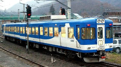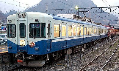 そして、京王5000系塗装である「1001F」です。 2012年10月。種車である京王5000系が2013年で運転開始50周年を迎えることから、 1001Fを京王時代の塗装に戻しました。 で、今回の珍車で極めつけは、この1001Fです。 ページトップの画像をご覧ください。 なんと車番まで京王時代の5863と5113になってしまっているではありませんか。 もちろん塗装を変えたからといって形式まで変えるなんてことは当然していません。 ただ、ただ、昔の姿で出ているだけです。 ところで地方鉄道で活躍中の車両が、古巣である大手私鉄のスタイルままで運行しているということは、 別に珍しいことではありません。 大井川鐵道で働く近鉄16000系、富山地方鉄道で働く京阪3000系、などなどです。 大井川鐵道では塗装も車番もそのまんまですが、形式もその数字を引き継いでいます。 とはいえ、これも例外で、概ね出先で新たな番号が割り振られています。 京阪3000系は地鉄では10030形です。 京王5000系は一畑電鉄でも4編成8両が2100系として活躍しています。 さて、こちらも2101Fが、富士急と同じように京王時代の塗装に戻されました。 でも車両番号表記は2101+2111です。