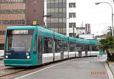 空中に浮かび上がった路面電車 広島電鉄 5000形 グリーンムーバー 50011999年3月.。広電5000形の第一編成5001Fはロシアの大型輸送機アントノフAn-124に載せられ、 ドイツ・ハーン空港から広島空港へ空輸されました。 補助金の申請期限に間に合わせるためだったこともあるそうですが、 話題作りのために、マスコミに注目してもらおうという意図が感じられます。 事実、そのときの映像は私にとっても衝撃的で今も目に焼き付いています。 さて、広電は何をアピールしたかったのでしょう。 広電のHPによると 「21世紀に向けて都市内公共交通機関の「都市の装置」となるよう、 広島電鉄では車両の近代化について積極的に取り組んでいます。 車両の近代化を進めるにあたり,高齢化社会に対応した乗降が容易で停留場との段差がほとんどなく、 省エネルギー・低騒音・低振動など環境に配慮され、輸送力や速達性に優れた性能を持ち、 いままでの路面電車のイメージを一新する車両として、ドイツより超低床車両を導入することにしました。」 とあります。 路面電車は昭和40年代前半、大阪、名古屋、神戸といった都市から全面撤退し、 都市交通の手段としては時代遅れの感がありました。 広電は、そんなイメージを一新し、 路面電車こそ21世紀の都市にふさわしいと主張したかったのです。 そして環境にも人にも優しい路面電車に欠かせぬテクノロジーこそは車両の超低床化であると…。 そういうわけで、広電 5000形は熊本市交通局9700形電車に次ぐ、 国内2例目の100%低床電車です。 さて9700形はアドトランツ製、5000形はシーメンス製となっており、 ともに舶来ものです。 単なる偶然ではありません。 当時、日本の鉄道車両会社は路面電車の開発には消極的で、 とりわけ低床車については皆無だったのです。 日本でも「軽快電車プロジェクト(1980年)」というのがあり、 広電3500形や長崎電気軌道2000形といったサイリスタチョッパ制御も登場しました。 しかし、新時代の路面電車というには、これといったものがなく、 ともに量産化はされることはありませんでした。、 3500形にいたっては、加速性能が今ひとつで市内線には乗り入れない限定運用に甘んじていたというのも情けない話です。 前述したように日本では路面電車はその路線自体が大幅に縮小され、 マーケット自体も小さく今更高額な開発費を投入しても採算がとれないという思いもあったのでしょうか…。 対して欧州の車両会社は、路面電車こそ、都市の輸送手段にふさわしい。 という思いを連綿と受け継いでいました。 思えば、欧州の町並み、とりわけ旧市街は日本とは違って古い建物が幅をきかせています。 モータリゼーションなど想像もしていなかった道路はその幅も狭く街に人を呼び込むには路面電車が最適です。 シーメンス社といった大手車両会社がその持てる力を路面電車に傾注したのは当然の流れでしょう。 ですから、日本の路面電車とは全く別の次元の路面電車が姿を現したとしても不思議なことはありません。 この新ジャンルはLRT Light Rail Transit と呼ばれます。 これらは、低床であるということだけではありません。 そのサイズも大きいものが多いのです。 広電がシーメンス社から導入した5000形も車体を5つもつなげるという、 日本では例のない大きなものです。 編成の長さが、軌道法で定められた30m以内に収まらないため 国土交通省の特認を受けることになるその車体は 宮島側から順番にA、C、E、D、Bの各車で構成されます。 A、B車には動力台車、E車には附随台車があるのですが、 なんとC、D車には車輪がないのです。 つまり、C車ならA、E各車とは連結棒で結ばれていて浮いている格好です。 ちなみに5000形の車体長は30.52mで編成定員は153人 車体重量は31.7tです。 5000形登場以前のエース3950形と較べてみると、 車体長は27.36mで編成定員は152人 車体重量は38.0tとなります。 いかに、車体重量が軽減されているかがわかります。 アルミ車体であることも軽量化に寄与していますが、台車の数が少ないということも大きなポイントです。 5000形の窓は固定式、扉はプラグ式で、いずれも大きいものです。 そのため車内は、明るくすっきりとしています。 そして低床ボディであることで、当然ステップはありません。 そのため車内は大変広く感じられます。 吊り広告を含め広告枠が一切無いということも影響しているでしょう これも当時としては異例のことでした。 5000形グリーンムーバーは大好評。 2002年までに計12編成が導入されました。(5002F以後は海路で搬入されています。) 5000形登場以後、日本の車両メーカーも本腰を入れてLRTの開発にとりかかります。 近畿車輛・三菱重工業・東洋電機製造・広島電鉄の4社が、 国産初の100%フルフラット超低床路面電車を共同開発することになりました。 広電5100形(Greenmover MAX)です。 構造は5000形ゆずりの5車体連接車です。 なお5000形の日本での受け入れ整備はアルナ工機が行ったのですが、 鉄道車両か