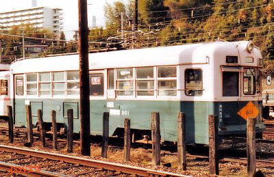 旧800形と神戸市電かねてから私は鉄道車両写真集と題して車輌の画像をUPしていますが、ここ数ヶ月、路面電車の画像を形式別にまとめ直す作業を行っています。 そこで目にとまったのが、広島電鉄の801号です。 今、現役で活躍している801号ではありません。 そこで、旧801号ということで、そのプロフィールを調べはじめたのですが、 なかなか彼を紹介する文献に行き当たらないのです。 その理由は明快です。 それらの文献が編集されたときには、すでにその姿を消していたからです。 つまり旧800形は短命だったのです。 被爆電車である650型の後継車両となる旧800形は、広電が戦後初めて導入した新車です。 しかし、早くも1972年には廃車が始まり、 1976年には801(803を改造、改番)のみになってしまいました。 今回、この801号の画像がたまたま見つかったため、とり上げることにしたのですが、 この画像もすでに現役を退いた姿であると思えます。 広島電鉄は、古い電車を大切に使い続けている鉄道会社です。 他所からやってきたものも含めて、戦前に製造されたものを今なお使い続けています。 そう、齢70年を超える車輌もいるのです。 ところが、旧800形の大半は20年ほどで姿を消し、 改造工事を施して生き延びた801号でさえ1983年にお役御免になっているのです。 なにがいけなかったのか? 1951年に10両製造された旧800形には共通する車体を持つ仲間がいます。 京都市電800形(801〜90)と伊予鉄道モハ50形(1次車:51〜 )です。 当時、戦後の物資不足で車両の製作も思うにまかせない時代でした。 路面電車には、いわゆる運輸省規格形といわれる共通仕様の電車はありませんが、 車体を共通化することで、彼らの製造メーカーであるナニワ工機はこの難局を乗り切ろうとしたことは間違いないでしょう。 そんなわけで、兄弟車のプロフィールから広島電鉄旧800形に迫ってみたいと思います。 京都市電800形の車体は、11,950 mm:2,430 mm:3,810 mmの3サイズ。 計測ポイントの違いか、高さのみ広島電鉄800形の3,465 mmと差がありますが、 長さ幅とも同じで、台車間距離、オーバーハング、ドア幅までもが同じです。 妻面こそ傾斜角のついた丸妻流線型構造となっているのでイメージは違いますが、 ともに張り上げ屋根の半鋼製車体をもちます。 前後扉であることも勿論同じで、窓配置はD(1)7(1)Dです。 (D:客用扉、(1):戸袋窓、数字:窓数) メカ的にも、同じです。 直接制御の吊り掛け電車で、台車もブリル77Eタイプ。 ということで、ともに目新しいところはありません。 1968年からのワンマン化改造工事に際しては、 801〜70がその対象となり、1800形1801〜70に改められました。 その際、後部扉を閉鎖して中央に降車扉を新設しています。 最前部にいる運転手が、戸の開閉を操作するのです。 扉が遠くに位置していたのでは、見通しがききません。 ワンマン化された京都市電1800形は、主力車輌として活躍し続けました。 1977年までに27両が廃車となりましたが、 残る43両は、1978年9月の京都市電全廃をもって姿を消しています。 しかも、うち6両(1844・66〜70)が阪堺電気軌道に払い下げられてモ251形(251〜56)となっています。 彼らも1995年までに全廃となりましたが、40数年の永きにわたって活躍したわけです。