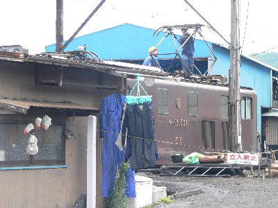専用線用機関車の頂点に君臨した王者−大阪セメント いぶき500形電気機関車−近江長岡駅からは伊吹山がよく見えます。そこには大阪セメントの工場があり1999年までは、ここからの専用線が近江長岡駅まで繋がっていました。 今でも空き地となって残っているヤード跡地には、タキ7300形などのセメント輸送用貨車が数多く見られました。 そしてその傍らには、箱形電機の姿が見られたのです。 大阪セメント「いぶき500形」電気機関車です。 1956年に日立製作所で2両が製造されました。 「いぶき」は、この伊吹工場専用線の由来となる伊吹山から取られたものです。 愛称として「ひらがな」が用いられることは一般的ですが、形式名としては「カタカナ」が当たり前で「ひらがな」は珍しいですね。 運転整備重量が50.0tであることから「500形」が付加されました。 車体中央側面に掲げられた大阪セメントの「ライオン印」が印象的です。 いわば専用線用の機関車ですが、その威容は堂々たるものでした。 同時期に造られた国鉄の貨物用直流電気機関車EF15形を彷彿させるほどのインパクトがありました。 スペックを見てみましょう。 全長:12600mm 全幅:2700mm 全高:3830mm 運転整備重量:50.0t 電気方式:直流1500V(架空電車線方式) 軸配置:B-B 台車方式:組立台枠 主電動機:HS277-Br-16形×4基 歯車比:16:76 (1:4.75) 1時間定格出力:600kW 1時間定格引張力:9000kg 最大運転速度:65km/h 1時間定格速度:23.8km/h 動力伝達方式:1段歯車減速吊り掛け式 制御方式:抵抗制御、直並列2段組合せ制御 制御装置:電磁空気単位スイッチ式 ブレーキ装置:EL14AR 空気ブレーキ、手ブレーキ、発電ブレーキ 数値的に比較するとF級(動軸が6つ)のEF15形に対しD級(動軸が4つ)の「いぶき500形」は重量から比較しても半分に過ぎません。 しかし専用線用の機関車といえば、日車製や北陸重機製の25t機といったディーゼル小型機が定番です。 彼らは移動機やスィッチャーと呼ばれ、鉄道マニアからも「おじゃま虫」というあだ名を奉られているほど存在感は薄いのです。 そう考えると「いぶき500形」の存在感は別格です。 ちなみに「いぶき500形」と同様の日立製50t電機といえば秩父鉄道の「デキ100形」があげられます。 本線用電機としても十分なスペックを持つものなのです。 「いぶき500形」はまさに専用線用の機関車の頂点に君臨する王者だったと申せましょう。 −−車体側面に掲げられたライオンマークは伊達ではありません。−− 「いぶき500形」の所有者である大阪セメントは、ライオンセメントとして有名で、ライオン印が入ったセメント袋を私は記憶しています。 大阪セメントは 1888年(明治21年)に設立された大阪窯業株式会社がルーツです。 1926年(大正15年)にはセメント部門が独立、大阪窯業セメント株式会社として発足しました。 (大阪セメント株式会社に社名変更したのは1963年(昭和38年)) 伊吹工場の開設は 1952年(昭和27年)です。 専用線が敷設され当初は蒸気機関車が活躍していました。 東海道線の電化に合わせて電化されたのが1956年。 このときに日立製の50t電機「いぶき501・502」号が導入されたのです。 戦後の復興期から高度成長期に至る日本の建築ブームを陰ながら支えてきたのが伊吹山のセメントであったと申せましょう。 しかし、成長にも陰りが見え始め、バブルが崩壊。 セメント業界も再編が進められることとなります。 1994年10月、大阪セメントは合併により住友大阪セメントととして再スタートを切ったのですが、 1999年6月に専用線は廃止され、伊吹工場も4年後の2003年にセメント製造を停止、廃墟となってしまいました。 同線のセメント輸送が1999年6月末限りでトラックに切り替えられお役ご免となった「いぶき500形」でしたが、 なんと大井川鉄道に譲渡され、ED500形(ED501・502)として再出発することになりました。 専用線用の機関車が鉄道会社に転籍して本線を走った例は他にあるでしょうか。 2000年3月から大井川鐵道で運転を開始した「いぶき500形」でしたが、 急遽、三岐鉄道へ異動(501は貸出、502は売却)することとなりました。 2005年2月に開港する中部国際空港の埋立土砂を輸送するためです。 三岐鉄道では重連で運用することが多いのですが、「いぶき500形」が2両揃っていたことで活躍の場が与えられたように思えます。 このとき重連総括制御が付加され2000年5月には三岐線での運用を開始しました。 2002年10月に中部国際空港埋立土砂輸送は終了。 502はそのまま廃車となりました。(2015年5月に解体) 501は、2003年3月に大井川鐵道に返却されました。 返却の際「ライオンマーク」は消され、そこには今、大井川鐵道の社紋が取り付けられています。 少し寂しく感じられたのは私の思い過ごしでしょうか。 ![]() 参考文献:「私鉄 電気機関車ガイドブック 西日本編」 誠文堂新光社 杉田肇 著 1977.2 |