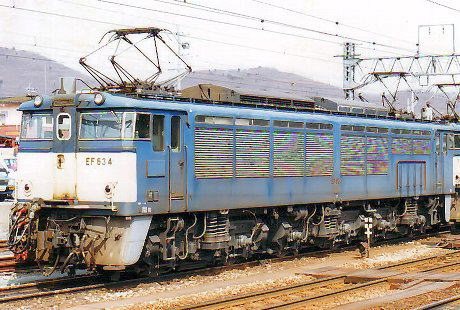 -勲章の数々- EF63形 直流電気機関車 現在、首都圏から北陸方面への鉄道貨物は、上越線経由の二往復ということになります。 信越線経由ではありません。 1997年の長野(北陸)新幹線開業にあわせ、並行在来線である信越線はJR東日本の手を離れ、 横川ー軽井沢(横軽)間については廃止されてしまい、レール自体が繋がっていないのですからどうしようもないですね。 他の新幹線並行在来線区間が3セクの「しなの鉄道」に移行したのに、 なぜ この区間だけが廃止されたのでしょうか。 さて今回、お話しするEF63形は、この区間だけのために製造られた特別な機関車です。 同区間の廃線に伴い、その運命をともにしました。 特別な機関車が必要とされたこの区間…。 まずは、この区間、すなわち碓氷峠についてお話ししましょう。 碓氷峠は、関東平野から、日本一の河川である信濃川(千曲川)の源流近くにまで、一気に駆け上がる難所に位置します。 ところがこの区間は、往古より太平洋側と日本海側を結ぶ交通の要衝でもありました。 明治20年代、ここに鉄道を通す計画が持ち上がったのは極めて自然な流れです。 スイッチバック式やループ線などを設ける案も検討されました。 しかし、地形的にうまく対処できず、 ここを越える横川~軽井沢間11.2kmは,66.7‰という最急勾配路線をアプト式というシステムでもって、 これをクリアすることにしたのです。ちなみにこの区間の標高差は552m。 アプト式とは、急勾配の線路を登る際に滑り落ちないよう、 「ラックホイール」と呼ばれる歯車型の車輪と「ラックレール」というこれまた歯車型のレールを噛み合わせることで 坂を登っていくシステムで、 スイスのカール・ローマン・アプト氏によって開発されたものです。 横軽区間では、このラックレール、すなわちピニオンギアを軌道の中央に3組、120度ずらして敷設しました。 何が何でもよじ登ってやる。という気迫が感じられます。 当然、この区間を走る機関車には、ラックホイールを装備した特殊な機関車が必要です。 当初、ドイツから輸入したアプト式蒸気機関車3900形が投入され、 この区間を最高時速9.6km、1日24往復、約80分で結びました。 でも、蒸気機関車です。トンネルの多さからもその煤煙が大きな問題となりました。 その後、煙突をT次形にした3920形が導入されたり、 トンネルの入り口に排煙幕を設置し、最後部の機関車がトンネルに入るやいなや、 これを引き下ろす「隧道番」という職人まで動員されました。 しかし、これだけ苦労をしても、1列車10両(当時の客車)が限界で、 輸送力の貧弱さは如何ともしがたいものとなってゆきます。 こうした問題を克服すべく、明治45年、横軽区間は日本初の幹線電化区間となりました。 今回もドイツから輸入した電気機関車10000形(EC40形)が導入されました。 所要時間も49分で結べるようになり輸送力もUPしました。 戦後、日本経済は発展を続け、これでも輸送力に限界が見えてきました。 そこで、またも勾配の緩い新線の建設が計画されましたが、多大な建設費がかかることから、 同区間に平行する新線を複線で建設、さらにアプト式から粘着運転方式にすることで輸送力の改善を図ることにしたのです。 これに伴い,この急坂でも粘着運転可能な2550kW級のF形電気機関車の開発が決定しました。 こうして信越本線直通仕様のEF62形と横軽区間専用仕様のEF63形が誕生することになるのです。 EF63形は1962年5月に1号機が試作機として製造されました。 それ以降,1976年7月まで,東芝,三菱・川重・富士などという錚錚たるメーカ-により製造され, 総数は25両となります。 EF63形ではベースとなるEF60形,EF61形と同じくB-B-Bの動軸配置とし, F形機では最重量となる運転整備重量108tで計画されました。 18tという平均軸重をして、強大なパワーを空転させずにレールに伝えるというわけです。 もっとも ただ重いだけではありません。中身も濃いのです。 66.7‰という急勾配の横軽区間を通過する(電車も含む)全列車の補機という特殊な任務を全うするために、 数多くの独自かつ特殊な装備が搭載されています。 主電動機はMT52形直流直巻電動機(端子電圧750V時1時間定格出力425kW)を採用しました。 制御装置は勾配区間での空転を防止する観点から、従来の単位スイッチ方式を取りやめ、 ノッチを細分化しトルク変動を小さくすべく CS16形電動カム軸式自動進段抵抗制御器・CS17形バーニア制御器・CS18形電動カム軸式転換制御器を搭載します。 台車もまた特殊装置が装備された独自の設計です。 両端台車はDT125形 。ここにはには電磁吸着ブレーキを装備しました。 電磁吸着ブレーキは鉄製の電磁石を直接レールに吸着させ制動力を得るものです。 レールブレーキとも呼ばれます。 制動時に車輪がロックしてしまったら、発電ブレーキは当然効きません。 これを防ぐ事を目的とした補助ブレーキですが、なくてはならぬ助っ人です。 中間台車はDT126形 。こちらには過速度検知専用の小型車輪を装着しま