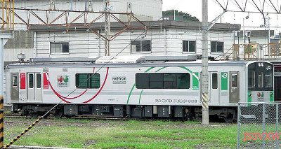 スマートであるということ。EV-E301系は2014年に烏山線に導入された蓄電池駆動の電車です。、愛称は「ACCUM」。Accumulator(=蓄電池)の一部を用いて命名されました。 形式の「EV」もまたElectric storage Vehicle(電気貯蔵車両=蓄電池車両)の意で、 電車ではあるのですが、モハとか にならなかったということで、新たな時代が到来したと感じられます。 ところで蓄電池駆動の車両なんですが、これ自体、別に目新しいものではありません。 過去に数多くの鉱山でトロッコを牽引したのは蓄電池式機関車。 すなわちバッテリー機関車(バテロコ)です。遊園地などでもバテロコが活躍していました。 西武山口線もかつてはバテロコでしたね。 しかし日本の鉄道線で営業用車両として使用することを前提とした蓄電池式電車は今回が初めての事例となります。 電車というのもポイントです。 ところで、いままでなぜ実用化できなかったのでしょう。 それは、蓄電池そのものが大きな問題を抱えていたからです。 普段通りの使い方をするだけでも、かなりの大きさものものが必要でした。 そして充電時間のかかることかかること…。 半日かけて充電して、ものの一時間で使えなくなる…ではとても使えません。 非電化区間を完全に無充電で走行するとすればバッテリーの搭載量は当然多くなります。 結果、車両は重くなり、エネルギー消費は増大します。 またバッテリーにより車両のスペースが圧迫されるといったデメリットもあります。 ならば途中駅に充電設備を設けて電力を補いながら走行する方法もありますが、 非電化区間内に新たに充電設備を設置する必要があり、コストがかかります。 また、いくら急速充電をしても停車時間にどれだけ充電できるでしょうか。 つまるところはバランスです 思うに電車というのは、効率のよいシステムですね。 常に架線から動力の供給を受けることができるのです。 非電化区間を走行する鉄道車両にあっては、車両自体に動力発生装置を積み込まねばならない訳ですから、 当然重くもなれば、構造も複雑になります。 でも、だからといって、すべての路線を電化するというのも無理があります。 それだけの設備投資に見合う輸送量がなければなりません。 ですから非電化路線というのは投資に見合うだけの見返りに乏しく、 車両に手を加えるにしてもそんなにお金をかけていられないというのが本音です。 しかしJR東日本は、日本最大の鉄道会社です。 非電化区間における環境負荷の低減について無関心ではいられません。 今回の導入に当たっても、JR東日本は様々な試みを繰りかえしてきました。 EV-E301系は、試作電車として製作されたE995系で開発を進められた蓄電池駆動電車システムを採用したものです。 ところがこのE995系。 元は2003年にシリーズ式ハイブリッド気動車として試作されたE991系気動車(キヤE991形:キヤE991-1)でした。 「もと気動車の電車」という点でも珍車ですね。 ハイブリッドは環境に優しいシステムであるということでトヨタの自家用車プリウスなどでも採用されているわけですが、 E991系に採用されたシリーズ式ハイブリッドというのは、プリウスのそれとは違います。 プリウスは、エンジン、モータ、ともに駆動に関わります。 対してE991系はモータでのみ駆動します。その電源を車載のディーゼルエンジンでまかなう電気式気動車です。 半世紀も前に存在した電気式気動車と何が違うのかといえば、ブレーキ時にモーターから得られた電力を蓄電池に蓄え、 それを再生利用するという点です。 JR東日本では、ディーゼルハイブリッド車両(キハE200 系)を実用化し、2007 年から小海線で営業運転中です。 でも車両自体に動力発生装置を積み込んでいる訳ですから、 当然重くもなれば、構造も複雑になっているということには違いありません。 JR東日本は次のステップへと進んでゆきます。 それがE995系電車(クモヤE995形:クモヤE995-1)です。 前述のハイブリッド気動車(キヤE991形)を2007年3月にいったん除籍し 2008年、燃料電池動車に改造(無車籍)しました。 燃料電池は水素を燃料とする固体高分子形燃料電池で出力65kW のものを2台搭載しました。 鉄道車両に搭載するということで、高出力で信頼性の高いものを選定したわけですが、時期尚早ということでしょうか。 即実用化ということにはなりませんでした。 翌年の2009年にE995系電車は蓄電池駆動車に再改造されました。 (車籍が復活したのは2010年2月(新製車扱い))。 さてE991系気動車はE995系電車となった後も愛称は気動車時代と変わらず「NEトレイン (New Energy Train) 」でしたが、 このとき愛称を「NE Train スマート電池くん」と改めました。 そしてこのシステムが、EV-E300系に受け継がれてゆくのです。 では、どこがスマートなのか? キーはパンタグラフです。 電車に改造した当初は燃料電池駆動だったためパンタグラフはありませんでしたが、 蓄電池駆動電車として再改造された時はパンタグラフを装備しました。 すなわち、