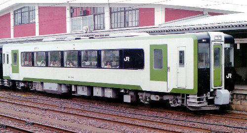 「最後の新製急行用気動車」-JR東日本 キハ110形 先行量産車2009年、岡山~津山間の急行「つやま」が廃止されました。これが最後の気動車急行です。(定期列車として) キハ48形で最後を迎えましたが、ながらくキハ58系を使用していました。 ともに国鉄時代の代表的気動車ですね。 JR東日本 最後の気動車急行はというと2002年に廃止された釜石・山田線急行の「陸中」です。 こちらにはJR東日本が、なんと新製したキハ110形が使用されていました。 JRが製作した唯一の急行用車両であり-最後の新製急行用気動車-となります。 2002年11月に急行「陸中」がなくなり、以降は後継となる快速「はまゆり」をはじめ、 釜石線および東北本線日詰 - 盛岡間の普通列車に使用されているキハ110形ですが、 いったいどのような車両だったのでしょうか。 キハ110形は、1990年3月。釜石、山田線でデビューしました。、 このとき、北上線で、キハ100形が同時にデビューしています。 ともに試作車で、JR東日本における非電化区間のこれからをうらなう存在でした。 あわせてご紹介します。 キハ100形は16m級車体の キハ110形は20m級車体の両運転台車です。 車内は床面を100mm程度低くしたせいか、けっこう広々と感じられます。 スチール製ですが、徹底した軽量化が図られました。 エンジンは高出力の直列6気筒直噴式インタークーラー付きターボで、 連続定格出力330PS/420PSを叩き出します。 これを1両あたり1台搭載するのですが、小型軽量のエンジンで、 乾燥重量はキハ40系のDMF15HSAの約半分というのですから驚きです。 キハ110形には西ドイツVOTIH社製 液体変速機T211rzを搭載しましたが、 これも軽量化に重きを置いた選択です。 結果、彼らは、勾配区間をものともしない電車並みの加速性能と 応答性のよい電気指令式ブレーキを持っていたため、 飛躍的に運転性能が向上し、ローカル線のスピードアップに大きく寄与しました。 また、車体の側窓に複層ガラスの連続固定窓、側扉にプラグドアを採用することにより、 密閉性が高められた車内は、快適な室内温度と静粛性を獲得しました。 旧型気動車の取り替えとローカル線でのサービス改善のために製造された彼らでしたが、 当時、大量に導入された第3セクターなどのレールバスとは一線を画するものです。 商品としての競争力低下を打破するものと参考文献には書かれていますが、 それは控えめに過ぎるように私には思われます。 普通列車はもちろん、急行そして特急としても用いられたという実績を持つのは、 彼らが優れた基本性能を有していたことに他なりません。 キハ100形は、キハ101~103形へ キハ110形は、キハ111、112形へと そのファミリーを増やしてゆきます。 JR東日本管内の津々浦々まで活躍の範囲を拡げることになるキハ100/110系。 その礎となるのがキハ110形 、キハ100形先行量産車なのです。 さて、最後の新製 急行用気動車となるキハ110形ですが、 そもそも「急行」とは何でしょう。 文字通りにゆけば、目的地に「急いで行く」ということなのでしょうが、 その点では「特急」には及ばないということで中途半端な存在となってゆきました。 もっとも、「特急」が、すなわち「特別急行列車」で「特別」だった時代は、 急行列車は庶民の足として日本全国津々浦々で運転されていました。 しかし1964年10月に東海道新幹線が開業して以来、新幹線網が拡充、 在来線の特急形電車が大量に余ってしまうということになってしまいました。 1972年10月に毎時の発車時間を揃えて利用しやすくした「エル特急」が各地で大増発されると 特急の大衆化がいっそう進み。 長距離は特急列車に格上げ、近距離は快速に格下げされ、 急行列車はその姿を消してゆきます。 国鉄では急行料金をとるということもあって、 西日本では急行形気動車(キハ58系など)への冷房取り付けも進み、 前述の「つやま」のように、 JRとなってもそのまま急行用として使ってゆくケースもまま見られました。 しかし東北以北では、気動車、客車(普通車)の冷房設置は遅々として進まない状況でしたので、 これを機に、老朽化していた急行形車両の代わりに余った特急形電車を投入して、 急行を特急へ格上げする動きが生まれてきました。 ただ、JR東日本管内には特急用の気動車が在籍していませんでした。 JR九州ではJR四国から185系気動車を転籍させて急行「火の国」「由布」を格上げ、 特急「あそ」「ゆふ」に使用しましたが、寒冷地対応ではありません。 それならばJR北海道から183系気動車を引き取って使えばいいではないか。 といいたいところですが、そういうことはありませんでした。 185系が短編成で使うことが前提だったのに対し、 183系は長大編成で使われるものだったからです。 長大編成が必要な長距離路線はすべからく電化されており、 485系電車などがこの任にあたりました。 一方、釜石、山田線にしても、北上線にしても短編成で十分まかなえるものです。 加えて路線もそう長いものではありませ
