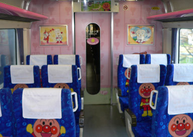 ![]() グリーン券のいらないグリーン車(キロハ186_2) 「ゆうゆうアンパンマンカー」キハ185系は、国鉄最後の特急用新形式車両として1986年に製造されました。民営化を直前にひかえたことに加え、とりわけ経営基盤が脆弱な、四国に投入されることになったため、183系とは、違うコンセプトで製作されています。 その最たるものが、”短編成で使用できる”ということです。 185系が導入された当時、四国では、181系による特急列車が運行されていました。 でも老朽化が目立つキハ28.58系による急行列車が、まだまだ多く走っていたのです。 これらを急行列車は、小単位のものが多く、これらを185系で置き換えることが急務と考えたのです。 キロハなどという合造車ができたのもそういう理由からです。 しかし、急行列車置き換え用の185系では、新生JR四国の救世主は務まりませんでした。 民営化されてまもなく、瀬戸大橋が完成しました。 瀬戸大橋線の開業は、JR四国にとっては朗報でしたが、高速道路も併設されていることから、大量の自家用車に加え、高速バスというライバルとも対抗してゆかなければならなくなったのです。 四国の鉄道は、線形の良くない山間部を縫うように走る路線がその多くを占めます。 走行性能も、従来の181系並み、急行格上げの格下特急用車両では、勝負にならないのです。 そこで、振り子装置を搭載した2000系のの登場です。(詳しくは2000系のページをご覧ください) 一時は、”しおかぜ””南風”という看板列車にも使われた185系でしたが、わずか5年ほどでその座を2000系に追われました。 今や”剣山””むろと”としてローカル特急に甘んじている状態です。 また20両が、JR九州に引き取られて新しい活躍場所を得ましたが、行き場のない一部の185系は、3000.3100番台となり、予讃線の普通列車として使用されています。 その凋落ぶりは目を覆うばかりです。 合造車であるキロハ186についても、中間車であるため、ますます使う場面がなくなり、8両中4両が九州でキハ186となったほか、四国においてもイベント用にでもして使わざるを得ないという状況になってしまいました。 そんな経過をふまえて、改造されたのが、キロハ186_2 「ゆうゆうアンパンマンカー」です。 ![]() ![]() アンパンマン列車は、2000年秋に、土讃線の特急”南風””いしづち”でデビューしました。 185系ではありません。2000系です。翌年、秋には予讃線でもその姿を見ることができるようになりました。 アンパンマンの楽しいキャラクターを車体いっぱいにプリントしたその姿は、結構インパクトがあります。 またこの車内も凄い!!写真右上をご覧ください。これは2000系アンパンマンカーの車内ですが、なんと愛らしいことか。 今年の春、私も乗車したのですが、50歳を超えたオヤジが、二人。 缶ビールをちびりちびり、やりながら旅している姿とは何とも不釣り合いだったと思われます。 ビジネスマンにとっても、「これはどうも…」と気恥ずかしい思いで乗っておられるかたも多かろうと思われます。 でも「ゆうゆうアンパンパンカー」は、 「高徳線、徳島線においてもアンパンパンカーを導入しよう。」 という、JR四国のアンパンパン戦略の一環に位置づけられ堂々のデビューを果たしました。 1両を二分割した半室構造を利用して、一部屋を丸々、プレイルームにするということをやってのけたのです。 父親経験者なら、ショッピングセンターの一角にあるプレイルームで子供のお相手をされたご経験がおありと推察いたしますが、まさにそんな感じです。(写真でご紹介できないのが残念!) さてイベント用にでもして使わざるを得ないと、先ほどは申し上げましたが、このプレイルーム、なかなか気合いが入っています。 というのもプロジェクトチームでは、実際に利用されるであろう、5歳以下の子供たちやその母親たちに対しモックアップを作成。 そこから様々な意見をフィードバックするということをしているのです。 仕切りのフェンス一つとっても、 「子供たちが登れない高さであり、かつ閉塞感がなく、保護者からは全体が見渡せるようにする。」 など安全面からの配慮がそこかしこに見られます。 ところで、この「ゆうゆうアンパンパンカー」は、キロハとなっていますが、乗車するのにグリーン券はいりません。 座席ルームは、かつてグリーン室だったところで、座席も従来のグリーン車用のものです。 でも普通車なのです。もっともプレイルームにグリーン券がいるはずもありません。 キハに形式変更するのが、妥当な気もするのですが、 「子供たちをVIP待遇するのが”ゆうゆうアンパンパンカー”なのだ。」 と考えてみてもいいような気がします。 地方にあっては、一家に2台以上の自家用車が当たり前という時代です。 鉄道なぞ、必要としないという子供たちに、見向きもされない車両ばかりを造り続けていたのではダメなのです。 夢と憧れを与え続けるアンパンマンにあやかって、未来の
