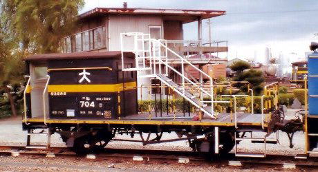 「JRに引き継がれた最小、最軽量の鉄道車両」-JR四国 ヒ600形控車 ヒ852-現在、控車と呼ばれる鉄道車両というと、トロッコ列車で、荒天時やトロッコ車両に乗車できない区間において、乗客が待機するための旅客車両。 あるいは、.動態保存用の蒸気機関車を回送する際、付属品や添乗員の輸送のために連結される車両が挙げられるでしょう。 前者はJR西日本「奥出雲おろち号」のスハフ12 801。 後者はJR東日本のSL回送控え車 オヤ12 1 が例としてあげられます。 いずれも12系客車です。 しかし、かつては事業用貨車で車両形式記号「ヒ」として区別される控車が存在しました その形態から大きく2つに分けられます。 →手すりだけが付いていて詰所の無いシンプルなもの →連結手を乗せるための詰所や屋根付き とです。 前者は、鉄道連絡船の可動橋に重い機関車が乗るのを避けるために使われ、 後者は、貨物駅やヤードで連結器の操作をする連結手を乗せるために使われました。 そのすべてが改造車で種車の下回りがそのまま用いられています。 ですから足回りは種車の違いにより、シュー式、一段リンク式二段リンク式と、様々です。 1968年10月以降、最高速度65km/h以下の車両は、記号に「ロ」が追加され「ロヒ」となり黄1号の帯を巻いています。 二段リンク式なら65km/h以上でも走れたでしょうが、 本線上を高速で走ることはありえないので、特に形式で区別する必要はなかったようです。 それでも調べてみるといくつかの形式ありました。その中で主なものを挙げてみます。 ヒ500形(ヒ500 - ヒ586) 1971年までに総数87両が製作された鉄道連絡船への積み下ろし作業用の控車。 (種車は、トム16000形、ワ1形、テム300形、ウ500形) JR北海道へ3両(ヒ575、ヒ576、ヒ578)が継承。 ![]() ヒ600形(ヒ600 - ヒ852) 1977年までに総数253両が製作された構内入換作業用控車。 改造に際して種車の上回りを撤去し、手摺と小屋(詰所)を設置しました。 (種車は、トム16000形、ワ12000形、ワ22000形、ワム3500形、ワム20000形、ワム21000形、 ワム23000形、ワム50000形、ワム90000形、スム1形、テム300形、テラ1形) ![]() と言い切ってしまいたいところですが、 手摺のみを設置した鉄道連絡船への積み下ろし作業用車両も存在します。 車齢の高いヒ500形の後釜に転用したのかもしれません。 JR北海道に35両、JR四国に16両、JR貨物に7両 計58両が継承されました。 JRが発足したのが1987年4月。 その時点ではもはや操車場で貨車を組み替えて貨物列車を仕立てることはなくなっていました。 青函連絡船も宇高連絡船もJR化 1年後の1988年の春には姿を消すのですから、 その時点で ヒ{控車}は全廃となってもおかしくないところです。 さて ヒ500形は、その1988年に全廃されているのですが、ヒ600形は2002年に形式消滅ということになっています。 そして今回とりあげましたヒ852ですが、2005年10月に撮影したものです。 特に保存してあるというものではありません。バリバリの現役で働いているように見えます。 連結器をご覧ください。 これは双頭連結器とよばれるもので 連結器が異なる機関車と電車など、通常は連結できない車両を連結させるアダプタとして使用するものです。 撮影した場所はJR四国の車両を一手に引き受ける多度津工場です。 後ろに控えている赤い移動用機関車とともに、保守点検のために工場へやってきた様々な車両をつなぎ替えては、 所狭しと駆け回っていたに違いありません。 車籍が抜かれているので、今現在、ヒ852がどうなっているのかわかりません。 今年の秋、また多度津工場でイベントがあるのならば、この眼で確かめてみたいところです。 参考文献:「新版 国鉄 客車 貨車 ガイドブック」誠文堂新光社 1978年.1月 |
