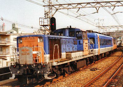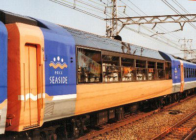 世界遺産(紀伊山地の霊場と参詣道)登録と「きのくにシーサイド号」きのくにシーサイド号は、1999年(4月〜9月)開催の南紀熊野体験博に協賛するということで企画、制作されました。参考文献によると、仕様決定から、なんと約4ヶ月で 「設計から、試運転、展示会まで」のスケジュールをこなさなければならなかったということです。 まあ、急造車両ということが言えそうですが、その割には、実に魅力ある車両で、 グリーン車仕立てではない普通車のジョイフルトレインとは思えない、豪華なものでした。 残念ながら、2007年8月に、その使命を終え、過去帳入りしてしまったのですが、 指折り数えてみると、8年ほどの短い生涯だったと言うことになります。 彼らはなぜ、かくも短命だったのでしょうか。 博覧会に協賛するカタチで制作された車両といえば、当珍車ギャラリーでもご紹介した、JR北海道のキシ80_501があります。 こちらも気合いの入った車両でしたが、博覧会以後は、もてあまし気味で、ひっそりとした最期をむかえました。 「きのくにシーサイド号」はどうだったのでしょう。 きのくにシーサイド号は、博覧会場へのシャトル列車であると同時に、動くパビリオン的な位置づけがなされました。 その核となるのが、オハ25 57展望車です。 25系寝台車、オハネ25 57を改造したものですが、 大胆にも車体構体の中央部分の側窓から上部をすべて取り除き、ステンレス製角パイプで、フレームをくみ上げました。 そこに新たに作られた側窓は、オープン構造にもなり、トロッコ形車両と同様、自然を直に体験してもらおうという趣向です。 オープンで使用することが前提でしたので、雨が吹き込んできても大丈夫なように防水処理された設備を備えています。 博覧会終了後は観光列車として、また団体列車として使用するため、AU77形冷房機はそのまま残されましたが、 なんと暖房装置は撤去され、照明装置も最低限のものしか備えていません。 言ってみれば、寝台車改造のトロッコ形車両だったのです。 きのくにシーサイド号が、夏期を中心に運行を行っていたわけは、そういうことです。 でも季節限定の車両を抱えるということは経済的とは言えません。 経済的でなかったといえば、きのくにシーサイド号の普通座席車もそうです。 オハ12系を改造した3両が用意されましたが、 381系のグリーン車から流用した座席を向かい合わせにし、ボックスシートを構成していました。 そして、そこには、幅60センチという大きなテーブルが各々用意されており、じつにゆったりとした室内でした。 でもその結果、座席定員はスハフ12-128が40、オハ12-228が44、運転台を取り付けたオハフ13-27が40と 全部でわずか124席しかありません。 きのくにシーサイド号は、特急でもなければ、グリーン車でもありません。 いわば青春切符でも乗れてしまうわけですから、これはもうけを度外視したものと言わざるを得ません。 きのくにシーサイド号は和歌山列車区 新和歌山車両センターの配属でしたが、 この車両だけしかいないというのも非効率的です。 牽引機のDE10 1152は、専用機で注目度は抜群ですが、トラブルを起こしたらという不安は常につきまといます。 そして、オハ25 57展望車です。これだけ大胆な切り取り工事をした以上、車体強度は当然低下します。 これは、永くはもたないだろうな…と思っていました。 案の定というかなんというか、早々に姿を消してしまった「きのくにシーサイド号」ですが、 彼らが生まれてきた、意味−その使命をもう一度考えてみたいと思います。 南紀熊野体験博は従来のパビリオン中心の博覧会ではなく、南紀熊野の魅力を全国にPRする博覧会でした。 メイン会場は田辺市の新庄総合公園と那智勝浦町の2ヶ所にありましたが、いずれの会場へも入場は無料。 これらは、南紀熊野を体験するための拠点(インフォメーションセンター)として機能しました。 実態はというと、協賛した各市町村での自然体験を中心とした様々なイベントがメインで、まさに体験博だったのです。 そしてオハ25 57もまた、南紀熊野の自然を直に体験してもらおうと、 その身を大きく切り欠いて自然とふれあってもらう空間を提供していたのです。 南紀熊野体験博は、南紀・熊野の魅力を全国に発信するだけでなく、 体験博をきっかけにして、紀伊山地の霊場と参詣道を世界遺産(文化遺産)に登録しようという運動に火を付けました。 しかして、2004年7月7日に、これは実現する運びとなったのですが、 その成果があった背景に「きのくにシーサイド号」の姿もあったのでは…と私は考えています。 自然と人々の祈りが形成した紀伊山地の霊場。そして、その癒しの地へと導いた熊野古道。 きのくにシーサイド号は、どちらかといえば海岸の景観を楽しむ列車であったとは思いますが、 採算を度外視しても、豊かな自然に触れることで、癒しの空間を提供し、 訪れる人々に大きな満足を与えたのではないかと思うの