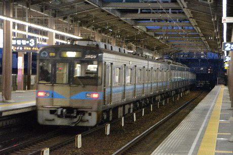 ー 92÷6=15 余り 2 −名古屋市営地下鉄 3050系 3159編成−名古屋市交通局3050系は3000系の次に鶴舞線用に造られた車両です。1993年に登場しました. 開業時(1977年)にデビューした3000系と同様の20m級4扉車ですが, 制御装置をGTO素子による1C4MのVVVFインバータ制御に変更、 台車はボルスタレス、と足回りは当時最新の桜通線6000形とほぼ同じ仕様となっています。 3050系が登場した1993年はといいますと、 鶴舞線が上小田井まで延伸開業し名鉄犬山線と相互直通運転を始めた年ということになります。 これを機に鶴舞線は輸送力を増強することになり,編成を4連から6連へと変更することになりました。 よって3050系は最初から6連固定(3M3T)でデビューしています。 さて既存の4連についても、すべて4連から6連へと変更することになりました。 名鉄では100系4連に中間車2連を新造しこれを増結することで6連化したのに対し、 名古屋交通局では3000系4連に新造の中間車を増結するのではなく、編成組み替えで対応することにしました。 しかしながら,3000系の在籍数は92両(4連×23編成=92両)です。 これを6連に組み替えると…、6連×15編成=90両となり,2両が余剰となってしまいます。 交通局ではこの余剰の2両を新製投入した3050系4連に中間車として組み入れることにしたのです。 これが鶴舞線3159編成です。 外見や内装などのみならず制御システムに至るまで,異なった車両同士が常時固定編成を組むという珍しい編成です。 ここで異種混結のお相手となる3000系についてお話しします。 3000系は,1977年の鶴舞線開業時に投入された車両です。 名古屋市営地下鉄初の冷房車で,車体側面のコルゲード板が特徴のセミステンレスの軽量車体です. 名鉄との相互直通運転を予定していたのため,車両構造や仕様については計画段階から名鉄と協議を行い, 車体寸法や性能などを統一した仕様となっています。 軌間は1,067mmですが車体長は20mの大型車両です。 集電方式は第3軌条の東山線や名城線とは異なる架空線式(直流1500V)となりました。 車両の全てが電動車となる強力な編成で登場しました。 営団地下鉄ふうに100の位が号車を表す形式を割り当てました。 3000形は将来の8連をとなることも考慮したようで、上小田井側は3800形となります。 前述したように1993年の名鉄犬山線との相互直通運転を機に4連から6連へと変更することにしたのですが、 3000形では3100,3200(Mc1-M2)と3700,3800(M1-Mc2)のユニットにバラし中間車として組み込むことにしました。 なお改番はしていません。 すなわち3000形は4両組成で登場し,その後中間車の製造も行われなかったため,3100,3200と3700,3800しか存在しないことになります。 もともとその意をなしてはいませんでしたが、号車を100の位で表すという野望ははかなく潰え去ったのです。 ところで、なぜ3000系では中間車を新製するのではなく、編成組み替えで対応することにしたのでしょう。 中間車2両を新造し旧編成に組み込むことにした名鉄100系とは車両構造や仕様について車体寸法のみならず、 性能なども統一した仕様となっているわけです。 事業者の考え方が違うのだと言い切ってしまうと話が進まないので、もう少しこだわってみてゆくことにしましょう。 まず3000形が増備されてゆく経緯をみてみます。 1977年の伏見〜八事間部分開業のために1次車36両(4連×9本)を製造して以降, 1978年八事〜赤池間延伸用16両(4連×4本), 1981年浄心〜伏見間延伸用16両(4連×4本), 1984年庄内緑地公園〜浄心延伸用に24両(4連×6本)と, 7年間で合計で4連×23本=92両が製作されました。 折に触れて追加投入されているわけですが、基本的に制御システムに変更はありません。 対して、名鉄100形は−−−といいますと 1977年の鶴舞線(伏見〜八事開業時)は名鉄線とは繋がっていません。 1978年、名鉄豊田新線と繋がった八事〜赤池間延伸時に1次車8両(4連×2)が製造されたのが最初です。そして 1979年に2次車8両(4連×2)が追加されてからは、どういうわけか 1981年の浄心〜伏見間延伸時も1984年庄内緑地公園〜浄心延伸時も追加投入されてはいないのです。つまり 1988年に3次車4両(4連×1)を追加するまで10年近く増備されていないことになります。 1979年から1988年の9年間はといいますと、国鉄がJR化される時期に重なってきますが、 折しも電車の性能が劇的に進歩した時機ともなります。 抵抗制御車であった100系が9年の空白を経て増備された時、3次形は界磁添加励磁制御となりました。 そして1991年、犬山線との相互直通をにらんで追加された4次車16両(4連×4)もまた界磁添加励磁制御です。 そして1993年に5次車20両が追加増備されるのですが、これはVVVFインバータ制御となりました。 この2年の間にまた制御システムが変更されているのです。 結果、100系では抵抗制御の1.2次車にはじまって、 界磁添加励磁制御(3〜4次車)そしてVVVFインバータ制御(5次車以降)と3通りの制御方式が混在することになります。 本来ならそれぞれ別系列にしても良さそうなものですが、 5次車は6連体制へと編成組み