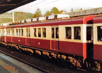 また1500系は、導入当初オリジナル塗装(阪急マルーンにアイボリーの窓帯)を施しました。 1990年には1700系導入色(オレンジを基調に青みがかった緑の窓帯) 1994年にはフルーツ牛乳と呼ばれた新塗装。 と3通り(試験塗装を含めず)のオリジナル塗装が存在しました。 どれもこれも阪急ではない独自性をアピールするために行われたものです。 ただ残念なことながら、2003年以降、合理化の一貫で阪急色に戻されてしまいました。 以下に編成表を示しています。 導入時はTc-M-T-Mcの4連が6本。形式もきれいに整理されています。 ← 日生中央・妙見口 川西能勢口 → 1550形 1530形 1580形 1500形 2150形 2100形 2150形 2100形 1550 1530 1580 1500 2150−2100−2151−2101 1551 1531 1581 1501 2152−2102−2055−2103 1552 1532 1582 1502 2158−2109−2160−2108 1553 1533 1583 1503 2156−2106−2157−2107 1554 1534 1584 1504 2159−2111−2059−2110 2015年4月廃車 1555 1535 1585 1505 2161−2104−2030−2105 2015年3月廃車 しかし、種車である2100系の編成と並べてみると、 異色な車両が混じっていることがわかると思います。 太字はもと2000系/2021系です。そして斜字が運転台付きだった車両です。 さて今回、取り上げたのは、能勢電鉄1500系2連。 デビュー時は1550(Tc)-1530(Mo)-1580(To)-1500(Mc)の4連で、運転台撤去車を中間車に含んだ編成でした。 これを2分割することになります。 登場の経緯はこうです。 1997年、能勢電では妙見口行きと日生中央行きを交互に運転することになり、 分岐点である山下では、双方折り返し運転をする列車に連絡するというダイヤを編成しました。 末端区間では2連を充当することになったのですが、その際 このMo、To車の運転台機能を復活させ1560-1510編成とし、残った1550-1500で2連を組み直したわけです。 運転台復活編成についてはステンレス帯を付け、標識灯も角形にして移設するなど能勢電独自のデザインとなっています。 ここにもこだわりを感じますね。このデザインが3100系にも引き継がれてゆきます。 前述したように、2003年以降、1500系2連も阪急色に戻されてしまいました。 しかし、2008年、能勢電鉄創立100周年記念事業の一環として、この2連にオリジナル塗装を復活させました。 1500Fに導入当初のオリジナル塗装(阪急マルーンにアイボリーの窓帯)。 そして、1510Fにはあの“フルーツ牛乳”色。 加えて2013年には、能勢電鉄開業100周年記念として、 開業当時の1型車両をイメージした復刻塗装(緑の車体に唐草模様や旧社章も再現)を1500Fに。 1510Fにはこれまた能勢電鉄オリジナルの50形車両をイメージした復刻塗装(クリームとブルーの塗り分け)が施されました。 2連であることから、復刻塗装車に選ばれたことは間違いないのですが、 能勢電のこだわりと歴史が最も色濃く残る1500系(2連)だからこその企画だったような気が私にはするのです。 参考文献:鉄道ピクトリアル 新車年鑑 1984年版 #438 1984.10